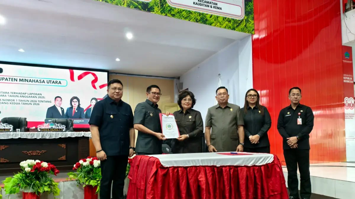Global1news.com, MINUT — Dewan Perwakilan Rakyat Daerah (DPRD) Kabupaten Minahasa Utara (Minut) menggelar rapat penyampaian rekomendasi DPRD terhadap Laporan Keterangan Pertanggungjawaban (LKPJ) Bupati Tahun Anggaran (TA) 2025, dilanjutkan dengan Keputusan DPRD Nomor 1 Tahun 2026 tentang Penetapan Kegiatan Masa Persidangan Kedua Tahun Sidang Kedua Tahun 2026.