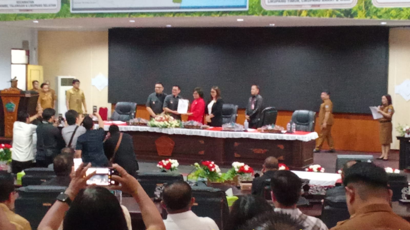 Rapat Paripurna dipimpin oleh Ketua DPRD Minut Vonny Adel Rumimpunu SE (VAR) didampingi Wakil Ketua II Chintya Imelda Erkles SAB, bersama Bupati Minut Dr. Joune J.E Ganda SE, MAP, MM, M.Si dan Wakil Bupati Kevin William Lotulung SH, MH.