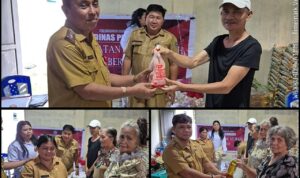 Dalam kesempatan tersebut, Bupati Joune Ganda memakaikan slempang kepada istri tercinta Ny. Rizya Ganda Davega yang telah dikukuhkan sebagai Ketua TP PKK Kabupaten Minahasa Utara.