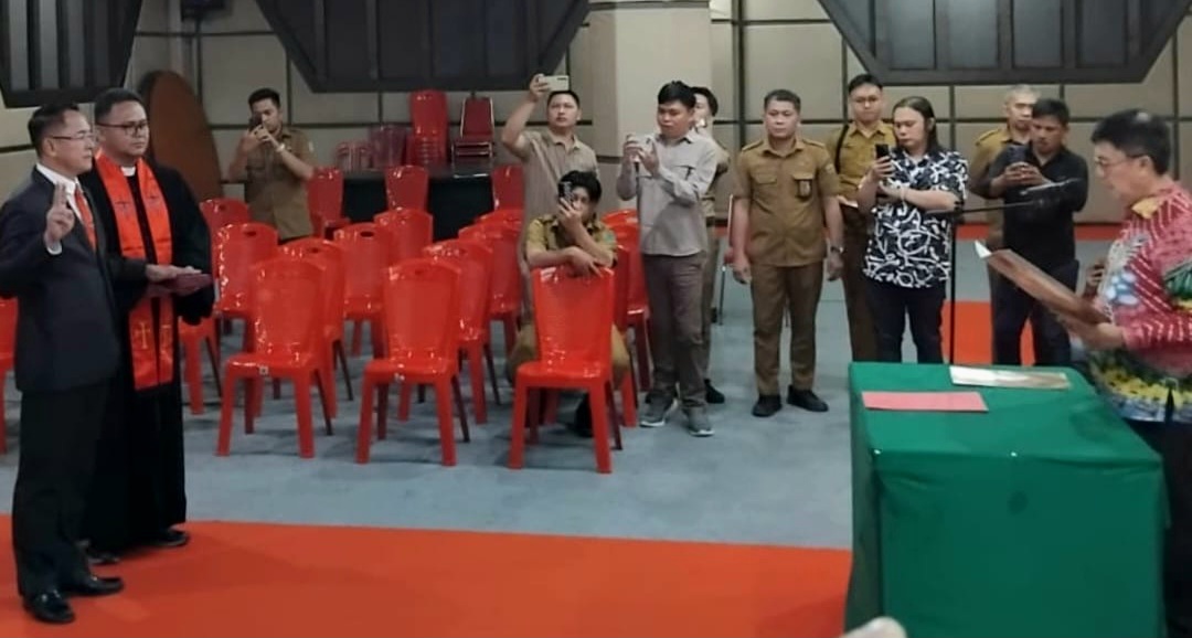 Mewakili Bupati Joune Ganda, Pelantikan dipimpin oleh Sekretaris Daerah (Sekda) Novly Wowiling, bertempat di Ruang Rapat Lantai III Kantor Bupati Minut, Selasa (13/01/2026).