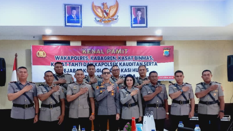Global1news.com, MINUT — Polres Minahasa Utara (Minut) menggelar acara kenal pamit, 7 Pejabat Utama (PJU) berganti, setelah sebelumnya dilaksanakan upacara Serah Terima Jabatan (Sertijab) di lapangan Polres Minut, Kamis (02/10/2025).