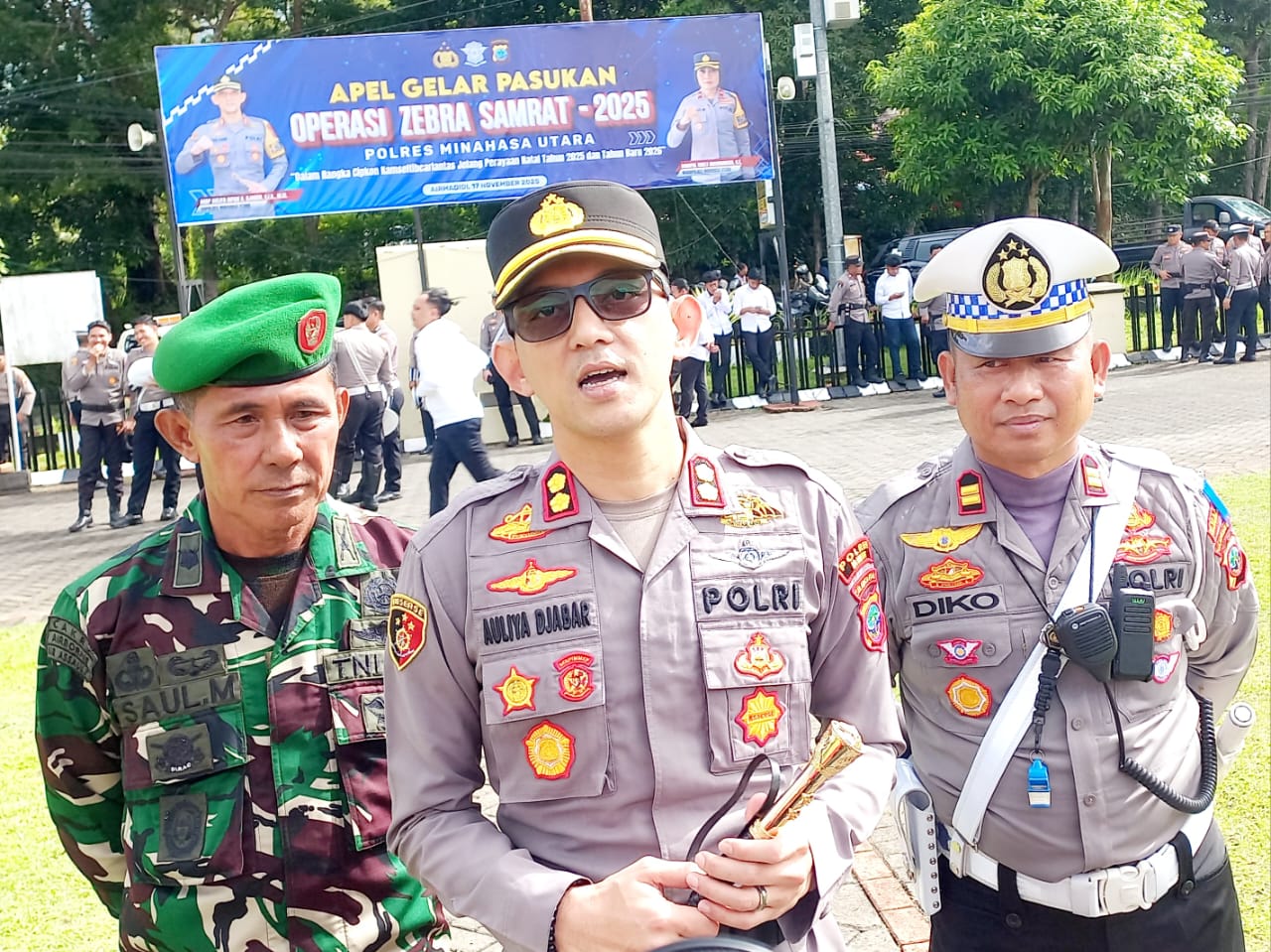Operasi Zebra Samrat 2025 dilaksanakan Polres Minut mulai tanggal 17-31 November 2025 dengan melibatkan berbagai instansi seperti TNI, Dinas Perhubungan, Satpol PP, BPBD dan Jasa Marga.