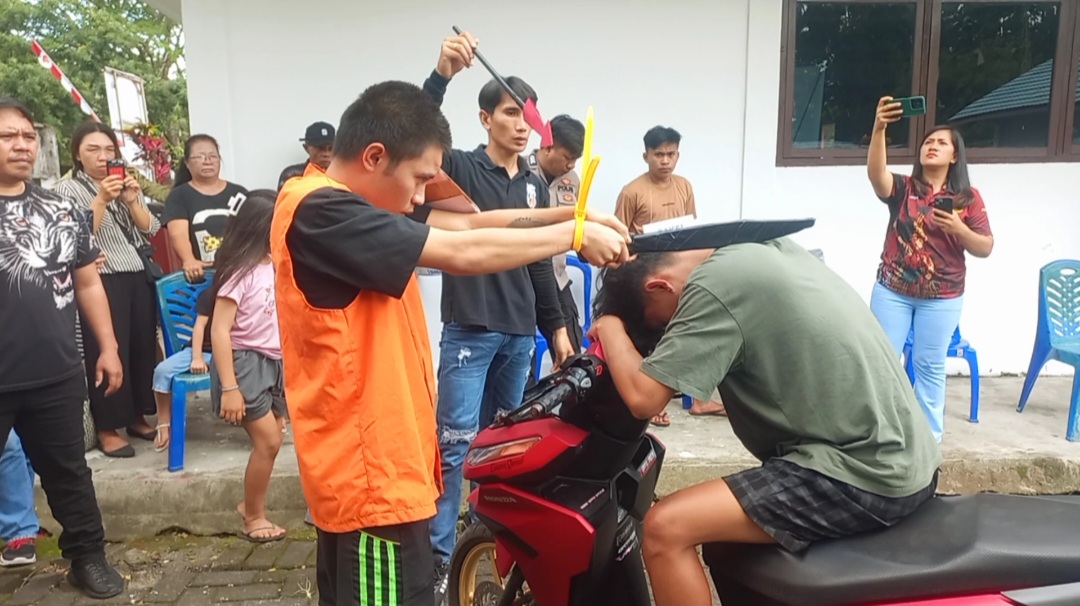 Rekonstruksi sebanyak 28 adegan, kronologis aksi pembunuhan oleh dua orang tersangka yaitu, MS alias Rio (29) dan JD alias Opis (22), dilaksanakan di halaman kantor Camat Dimembe, Jumat (14/11/2025).