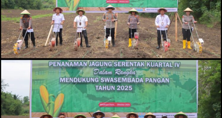 Global1news.com, MINUT — Polres Minahasa Utara (Minut) melaksanakan penanaman jagung serentak kwartal