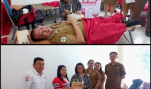 Global1news.com, MINUT — Bekerja Sama dengan Palang Merah Indonesia (PMI) Kabupaten Minahasa Utara (Minut), Tokoh Masyarakat William Luntungan menggagas karyawan outsorcing dari Dinas Lingkungan Hidup (DLH), biasa disebut pasukan orange untuk melakukan donor darah, di Pendopo Kantor Bupati Minut, Senin (06/10/2025).
